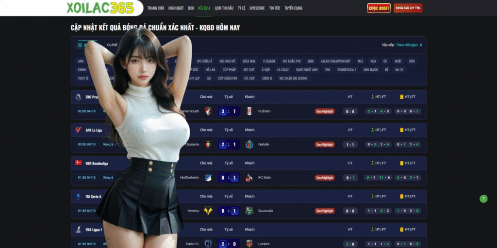 No matter which competition you follow — whether it’s the English Premier League, La Liga, Serie A, Champions League, or World Cup qualifiers — Xoi Lac TV keeps you up to date with every scoreline and match detail.